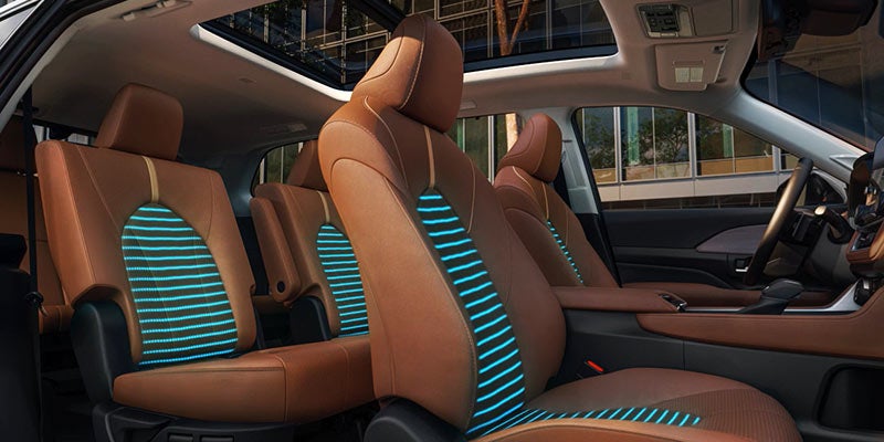 Go the distance in comfort. Grand Highlander features a 10-way power-adjustable driver’s seat that lets you customize your favorite driving position. Standard second-row captain’s chairs give those in the second row the first-class treatment, or choose available bench seating to maximize your seating for up to eight. Add even more sophistication to the interior with available leather-trimmed seating.