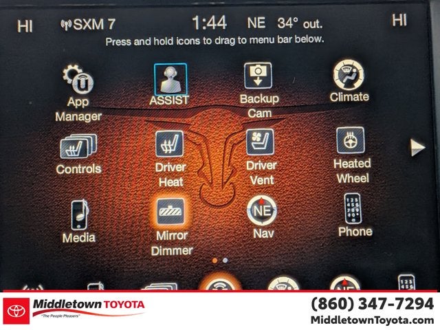 1 Yr. Trial (Registration Required), 10 Speakers, 20" x 9" Chrome Clad Aluminum Wheels, 4-Wheel Disc Brakes, 5-Year SiriusXM Traffic Service, 5-Year SiriusXM Travel Link Service, 8.4" Touchscreen Display, ABS brakes, Anti-Spin Differential Rear Axle, Audio Jack Input for Mobile Devices, Automatic temperature control, Brake assist, Delay-off headlights, Dual front impact airbags, Dual front side impact airbags, Electronic Stability Control, Front anti-roll bar, Front dual zone A/C, Front fog lights, Front wheel independent suspension, GPS Antenna Input, GPS Navigation, HD Radio, Heated Front Seats, Heated Second Row Seats, Heated Steering Wheel, Integrated Voice Command w/Bluetooth®, Keyless Enter-N-Go, Low tire pressure warning, Media Hub (USB, AUX), Memory seat, Occupant sensing airbag, Overhead airbag, Panic alarm, ParkView Rear Back-Up Camera, Pedal memory, Power 10-Way Memory Driver & 6-Way Passenger Seats, Power Sunroof, Radio: Uconnect 3C Nav w/8.4" Display, Rear anti-roll bar, Remote Proximity Keyless Entry, Remote USB Port, Security system, SIRIUSXM Satellite Radio, SIRIUSXM Traffic, SiriusXM Travel Link, Speed control, Steering wheel mounted audio controls, Tilt steering wheel, Tip Start, Traction control, Trip computer, Uconnect Access, Ventilated Front Seats.